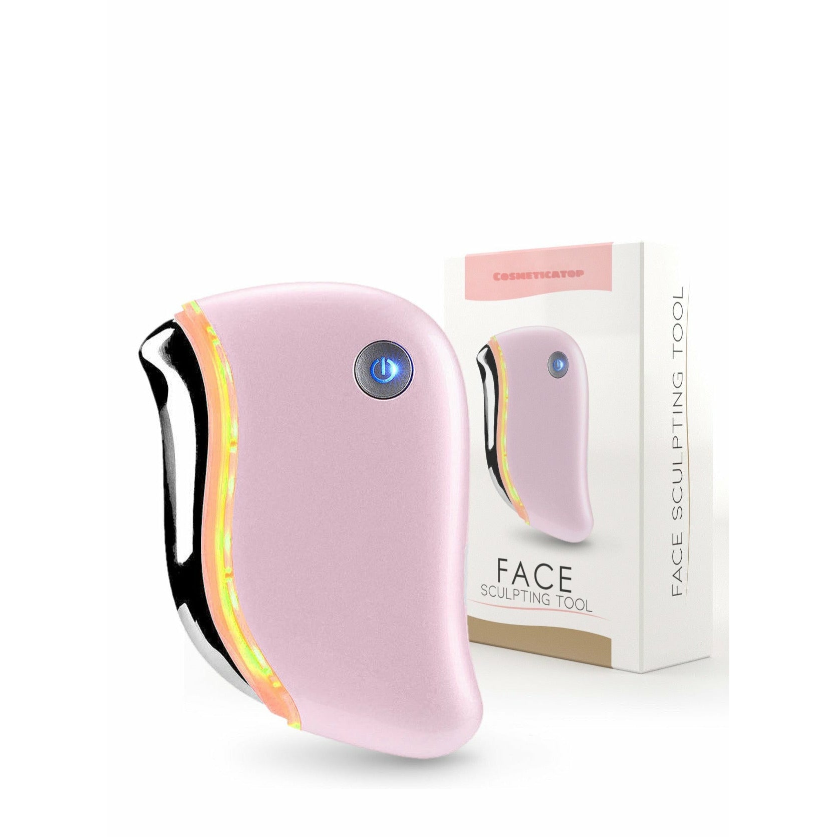 Introducing AuraLumière Gua by CosmeticaTop – the advanced 3-in-1 facial sculpting tool. This micro-current device rejuvenates and restores firmness to the skin in minutes. With vibration, heat, and LED light therapy, AuraLumière Gua enhances skincare absorption for a lifted, radiant, and refreshed complexion. Immediate and long-term results await.