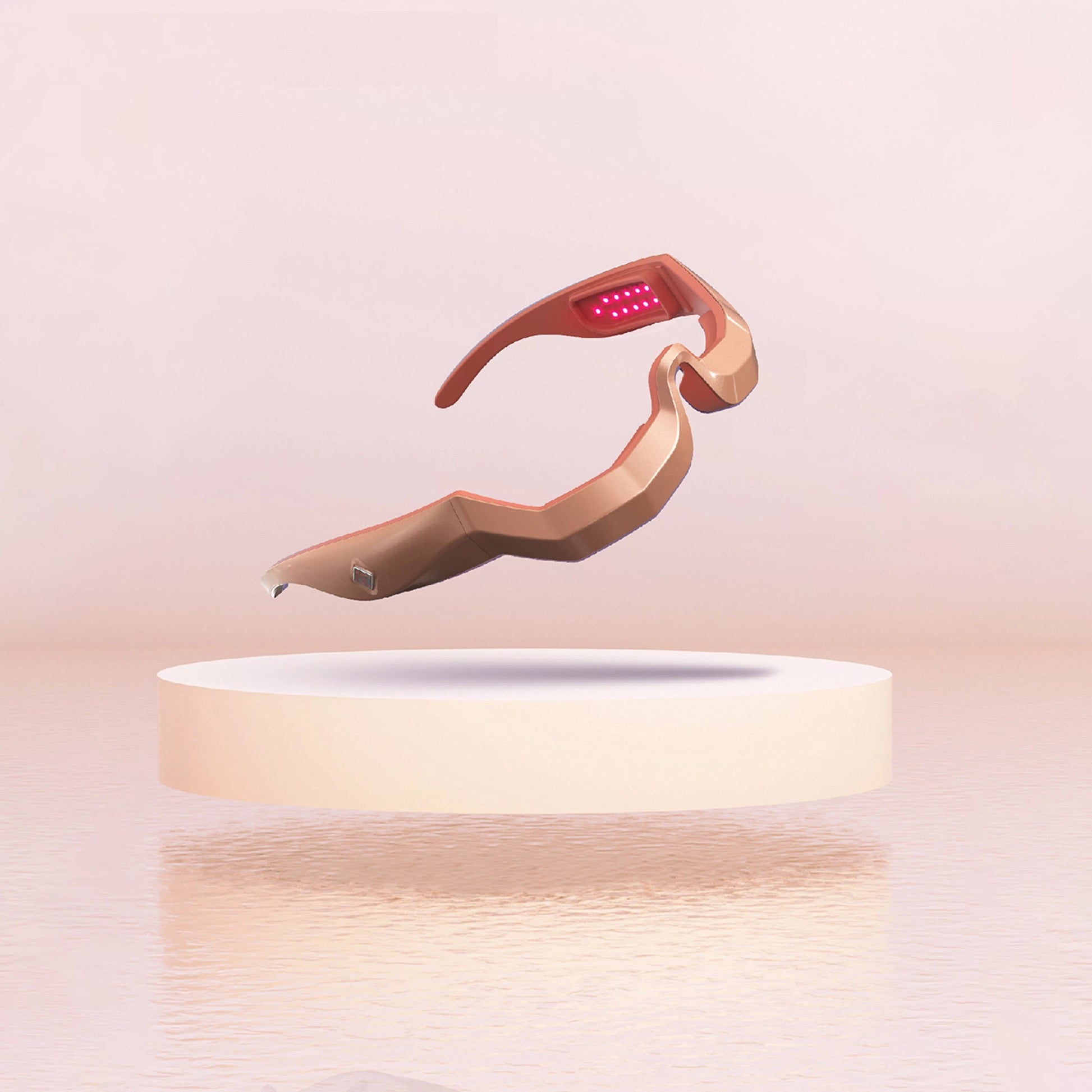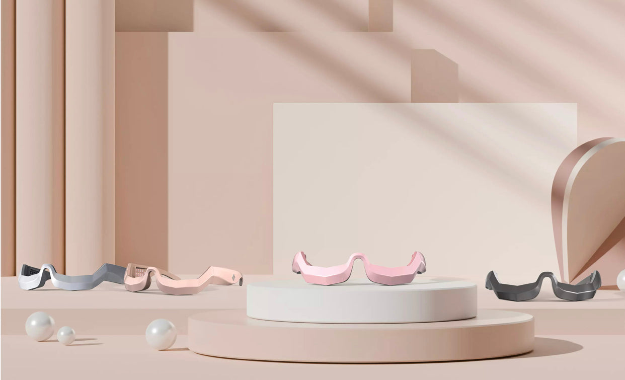 Gold UnderEye creates a customized eye treatment with three different LED lights that address various skin care concerns around the eyes. With NASA-inspired LED chromatherapy built into the frame of the glasses, the device administers red light to boost suppleness, yellow light to minimize dark circles, and orange light to reduces puffiness.